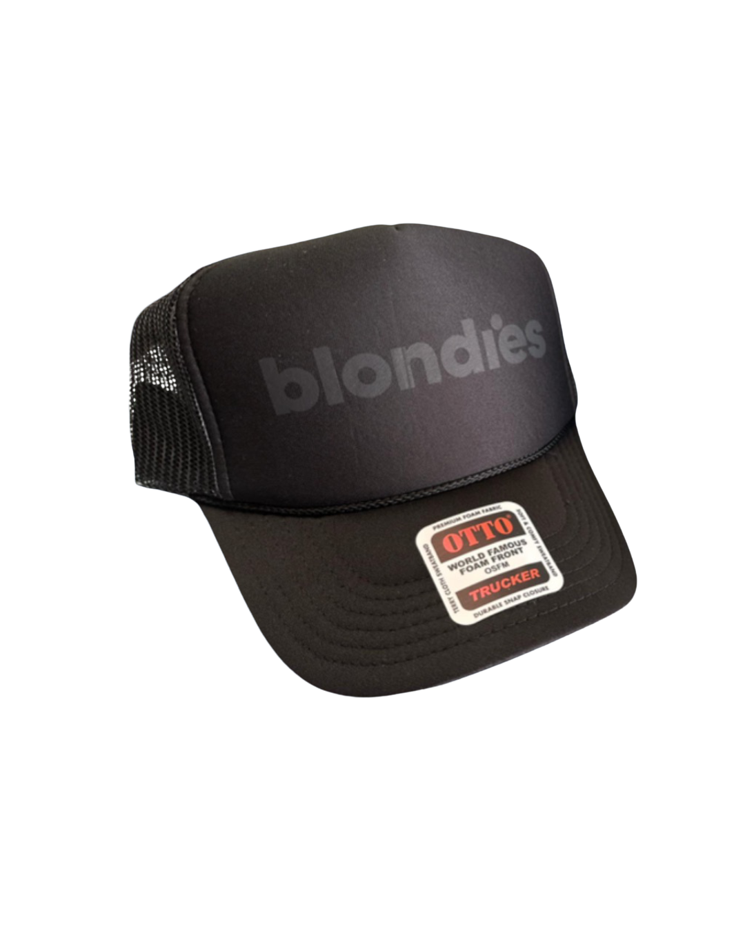This sleek all-black trucker-style hat features our iconic Blondies logo front and center, with the classic snapback adjuster for the perfect fit (because no two blondie heads are the same, obviously). It’s mysterious. It’s dramatic. It’s ready for your grocery run or your indie music festival debut.