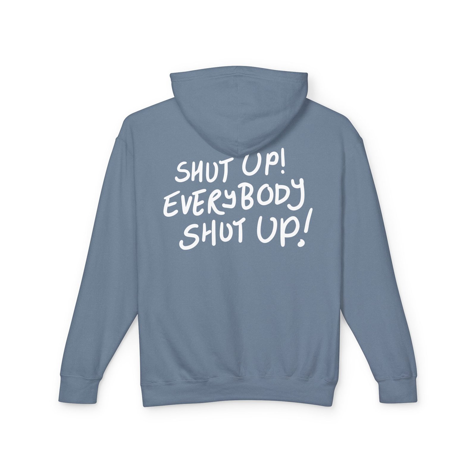 Quiet in the front, loud in the back—this is the hoodie that says it all. The Blondies Shut Up Hoodie keeps things classy with our subtle chest logo on the front, but turn around and it’s game over: “Shut up! Everybody shut up!” in big, unapologetic letters. Cozy, warm, and ridiculously soft, it’s made for anyone who loves comfort with a side of personality. Available in classic black and signature Blondies blue, this hoodie is your go-to for chilly days, podcast marathons, or simply making an entrance. Wear it, own it, and let the hoodie do the talking.