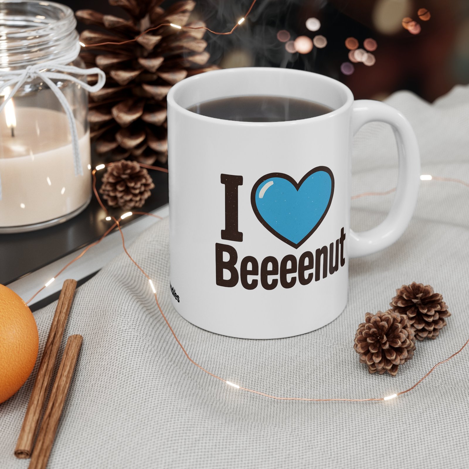 Some people love coffee. Some people love tea. But real ones? They love Beeeeenut. π₯π Our “I Love Beeeenut” mug is the ultimate ode to Blondies’ most special nut (don’t ask, just love it). Perfect for your morning brew, late-night tea, or that suspicious third cup of coffee you definitely don’t need, this mug guarantees giggles with every sip.